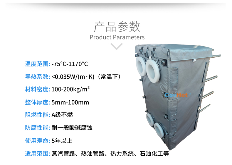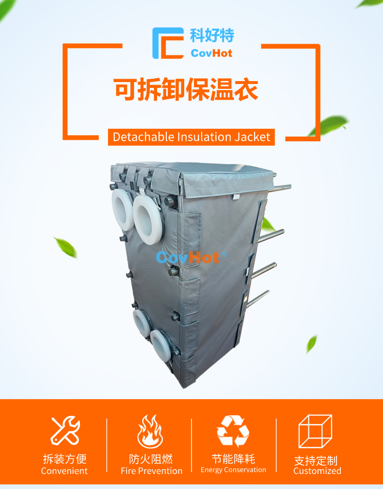 針對以上的問題,科好特自主研發(fā)的節(jié)能型板換保溫套,根據設備不同的尺寸形狀量身定制,可有效減少換熱器的熱損失,裝拆方便,可重復使用。節(jié)能型板換保溫套是工業(yè)節(jié)能保溫理想選擇!